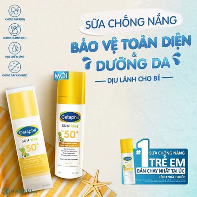 Cetaphil Sun Kids SPF 50+ Liposomal Lotion phổ rộng có khả năng chống nắng cho làn da nhạy cảm của bé với khả năng bảo vệ rất cao.