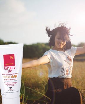 Kem Chống Nắng Dành Cho Da Mụn SPF45 - 50mlKhác với làn da thường, da mụn cần được bảo vệ và chăm sóc kỹ hơn. Bởi vậy, việc lựa chọn sản phẩm chăm sóc da phù hợp và không làm tổn thương da cũng gây nhiều khó khăn hơn. Đó là lý do Papulex cho ra đời dòng sản phẩm Kem Chống Nắng Dành Cho Da Mụn SPF45 UV High Protection Cream Papulex. Kem Chống Nắng Dành Cho Da Mụn SPF45 UV High Protection Cream Papulex thuộc dòng sản phẩm kem chống nắng hỗ trợ làm giảm mụn dành riêng cho da mụn. Làn da không những được bảo vệ tối đa khỏi các tác hại của môi trường nhờ chỉ số SPF45 mà bạn còn cảm nhận được lượng mụn và thâm sẹo giảm đi trông thấy sau mỗi lần sử dụng.Kem Chống Nắng Dành Cho Da Mụn SPF45 UV High Protection Cream là sản phẩm chống nắng dành riêng cho da mụn của Papulex, giúp ngăn ngừa và bảo vệ làn da bị mụn tránh khỏi những kích ứng, tổn thương khi tiếp xúc với ánh nắng mặt trời.Kem Chống Nắng Dành Cho Da Mụn SPF45 UV High Protection Cream Papulex còn giúp dưỡng ẩm cho da mụn, khiến da bạn không những không bị khô, rát mà còn mềm mại và tươi mát hơn. Quan trọng nhất, Kem Chống Nắng Dành Cho Da Mụn SPF45 UV High Protection Cream Papulex không chỉ đơn thuần là sản phẩm chống nắng mà còn chứa nhiều thành phần hỗ trợ tốt cho liệu trình ngừa mụn. Papulex nổi tiếng với các sản phẩm chứa 3 tác động ngừa mụn và bảo vệ da, bao gồm: phức hợp ABA, Nicotinamid 4%, Kẽm PCA giúp giảm mụn nhanh, đảm bảo an toàn cho làn da.- Phức hợp ngăn ngừa vi khuẩn bám dính ABA (Anti Bacterial Adhesive Substance): ngăn chặn vi khuẩn gây mụn Propionibacterium acnes (P.acnes) bám dính vào lớp tế bào nằm trên bề mặt da. Chặn đứng sự tăng sinh của vi khuẩn P.acnes.- Niacinamide 4%: là phân tử tự nhiên, dẫn xuất của Vitamin B3.có đặc tính kháng viêm, giúp làm dịu, cải thiện mụn nhờ tác động ức chế sản sinh bạch cầu và các enzyme lysosome làm hại thành nang lông. Ngoài ra, thành phần này không dẫn đến hiện tượng đề kháng của vi khuẩn.- Kẽm PCA (Pyrrolidone Carboxylic Acid): giảm sự bài tiết bã nhờn, giảm hiện tượng bóng dầu, không gây khô da giúp da được mịn màng, êm dịu hơn.Ngoài ra, Kem Chống Nắng Dành Cho Da Mụn SPF45 UV High Protection Cream Papulex với thành phần tự nhiên không gây bít lỗ chân lông, không gây mẫn cảm với ánh nắng, không tạo cồi mụn, không paraben và không chứa hương liệu nên bạn có thể yên tâm sử dụng.Công dụng:- Ngăn chặn tia UV bảo vệ làn da dưới tác động ánh nắng mặt trời- Hỗ trợ làm giảm mụn, thâm sẹo do mụn hiệu quả- Kiểm soát điều tiết bã nhờn, giữ ẩm cho da.Bảo quản:- Đậy nắp lại sau khi sử dụng.- Bảo quản tránh xa tầm tay trẻ nhỏ.- Không đặt ở những nơi có ánh sáng trực tiếp chiếu vào, hay những nơi có nhiệt độ quá cao hoặc quá thấp.Dung tích: 50mlThương hiệu: PapulexXuất xứ: Pháp