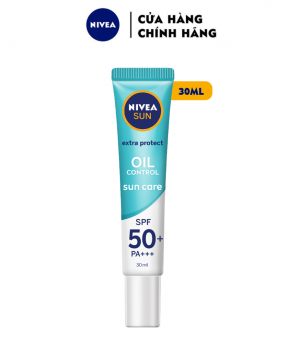 THÔNG TIN SẢN PHẨM :- Tinh Chất Chống Nắng Nivea Sun Care Extra Protect SPF50+ PA+++ là sản phẩm serum chống nắng da mặt đến từ thương hiệu mỹ phẩm NIVEA, giúp bảo vệ da khỏi tác hại của tia UVA1, UVA2 và UVB, đồng thời nuôi dưỡng và hỗ trợ phục hồi làn da sáng mịn từ bên trong.- Bạn có biết, trong các tia UV, tia UVA1 chiếm tới 70% và có khả năng xuyên sâu nhất xuống dưới da, gây ra nám, tàn nhang và nếp nhăn. Không phải sản phẩm chống nắng nào cũng có thể bảo vệ da khỏi tia UVA1. Tinh Chất Chống Nắng & Dưỡng Sáng Da Nivea với chỉ số chống nắng mạnh mẽ SPF50+ PA+++ sẽ giúp bảo vệ da tối ưu khỏi tia UVA1, UVA2 và UVB, ngăn ngừa nám, tàn nhang và nếp nhăn do nắng.- Tinh Chất Chống Nắng Nivea Sun Care Extra Protect Oil Control Serum SPF50+ PA+++ 30ml (màu xanh): dưỡng sáng da và kiểm soát dầu.LOẠI DA PHÙ HỢP :- Sản phẩm phù hợp cho da dầu, hỗn hợp thiên dầu.GIẢI PHÁP CHO TÌNH TRẠNG DA :- Dầu thừa - lỗ chân lông to- Da sạm, xỉn màuƯU THẾ NỔI BẬT : - Chứa hoạt chất L-carnitine giúp hạn chế bã nhờn tiết ra đáng kể trên da mặt.- Công thức tiên tiến với chỉ số chống nắng SPF50+ PA+++ giúp bảo vệ da tối ưu khỏi tia UVA1, UVA2 và UVB, giúp ngăn ngừa nám, tàn nhang và nếp nhăn do nắng.- Kết cấu dạng tinh chất chứa các hạt phân tử siêu nhỏ, dễ dàng thấm nhanh và sâu vào da*, đem lại cảm giác dịu nhẹ, thoáng mịn không nhờn rít.- Đặc biệt, có thể sử dụng như lớp lót trang điểm, mỏng nhẹ tự nhiên và phù hợp với nhiều màu da.HƯỚNG DẪN SỬ DỤNG : - Dùng sau các sản phẩm dưỡng da và trước các sản phẩm make up, trên da đã được làm sạch.- Cho một lượng Tinh Chất Chống Nắng Nivea lên tay và thoa đều lên mặt.- Thoa lại sau 2 tiếng nếu tiếp xúc nhiều với nắng.- Thoa trước khi ra nắng 20 phút.BẢO QUẢN : - Bảo quản nơi khô ráo, thoáng mát, tránh ánh nắng trực tiếp.- Đậy nắp kín sau khi sử dụng.- Tránh xa tầm tay trẻ em.